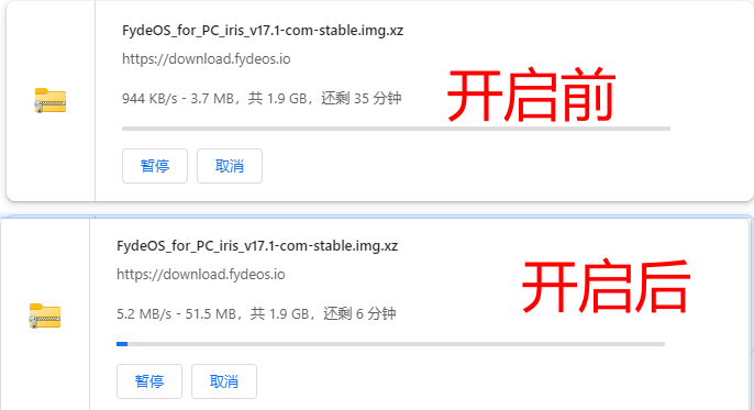 下载同一文件,可以看到下载速度明显提高,当然这和家里的宽带速度也有关系,老大家里的宽带不好,所以下载速度不是那么高。