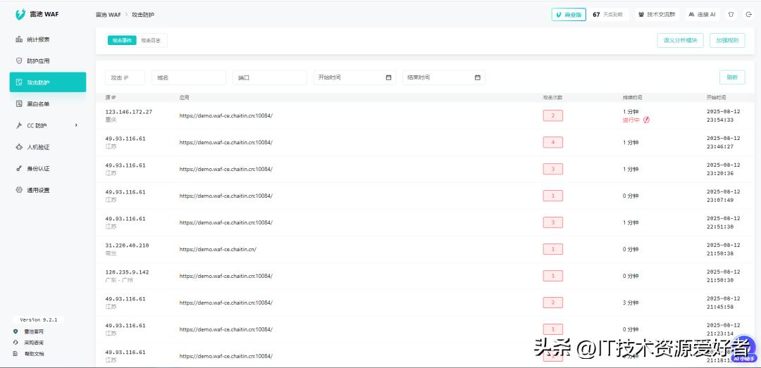 SafeLine(雷池) 是一款开源免费(GPL-3.0 license)、功能强大、简单好用的 Web 应用防火墙(WAF),旨在为企业提供高效、可靠的安全防护,抵御各类网络攻击。